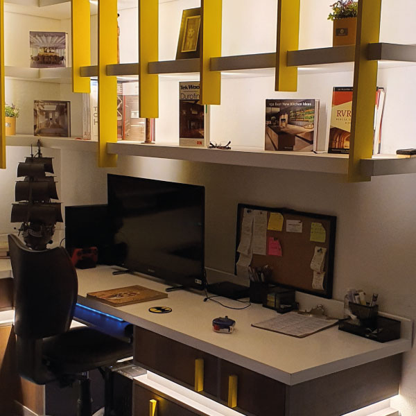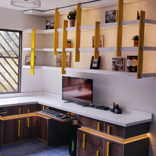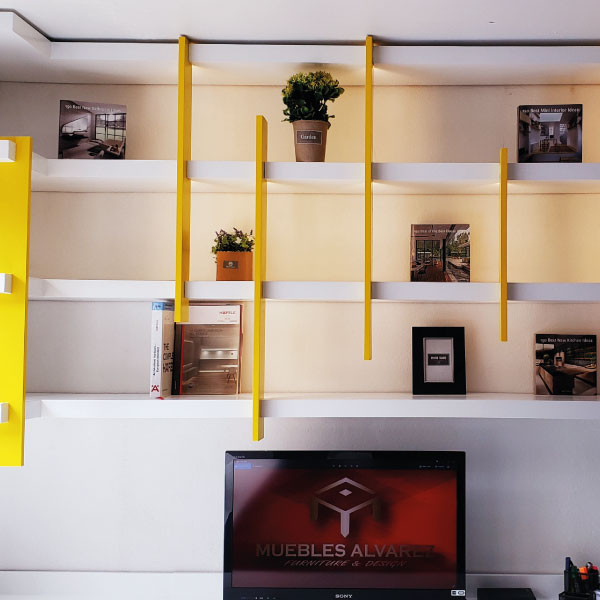 Estación de trabajo fabricada en MDF con acabado en poliuretano.