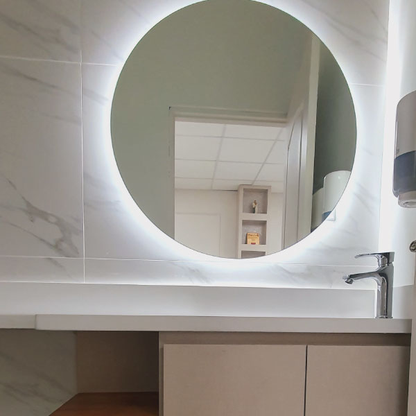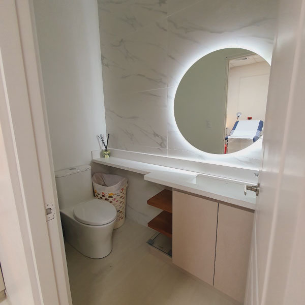Mueble de baño fabricado en melamina hidrofuga y sobre de cuarzo.