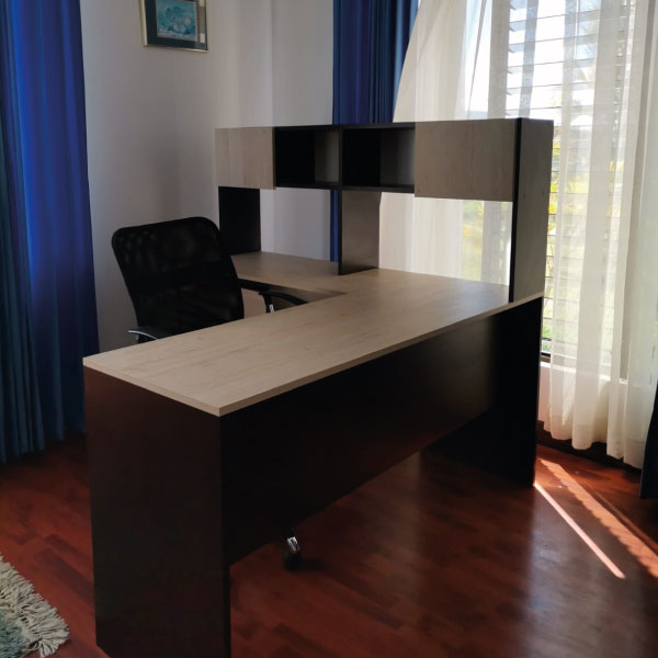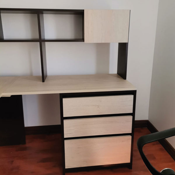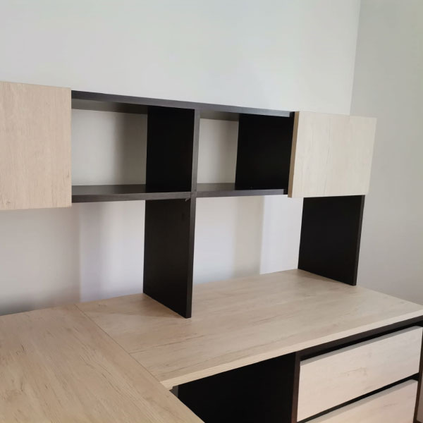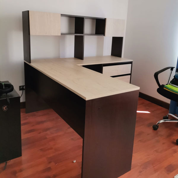 Escritorio en "L" fabricado en melamina hidrofuga.